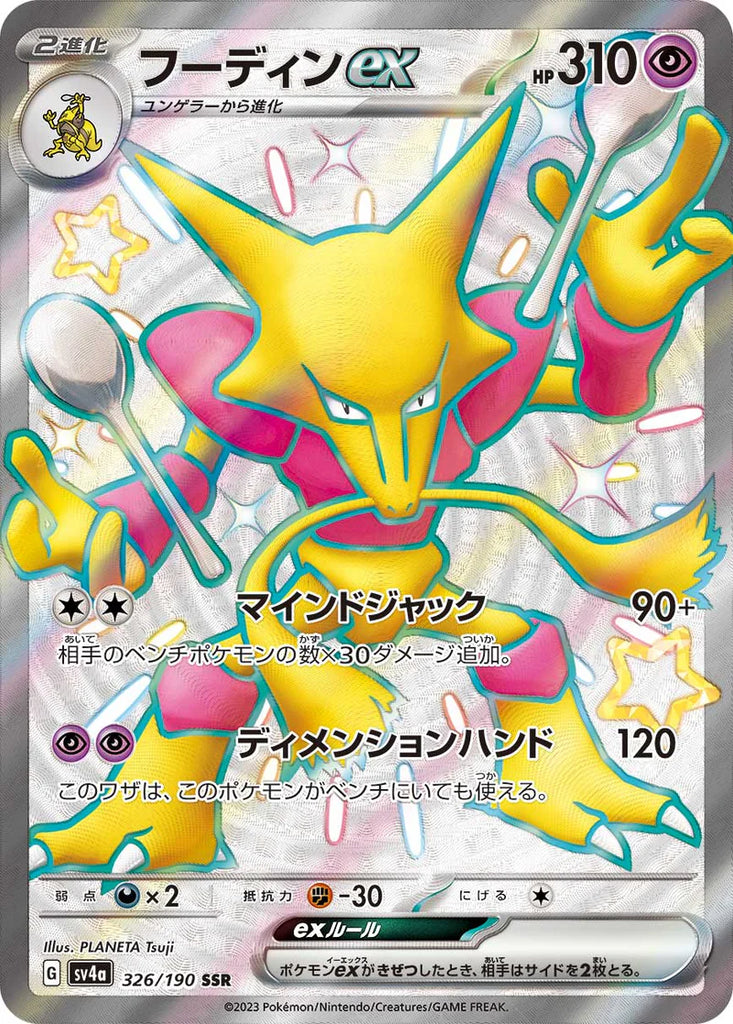 Pokemon Card Japanese Shiny Alakazam ex 326/190 SSR sv4a